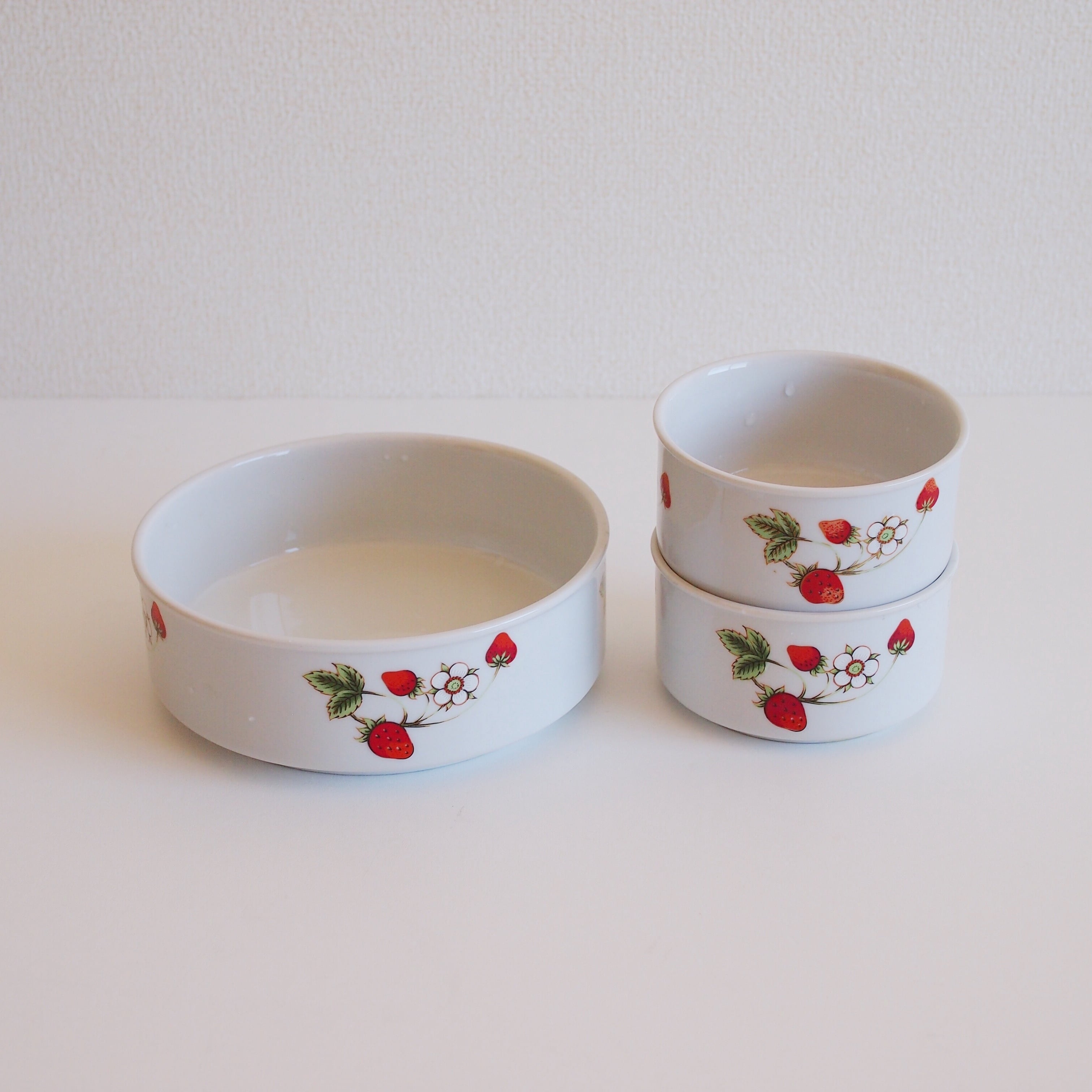 ヴィンテージ 昭和レトロポップ いちご柄 白磁の鉢3つセット