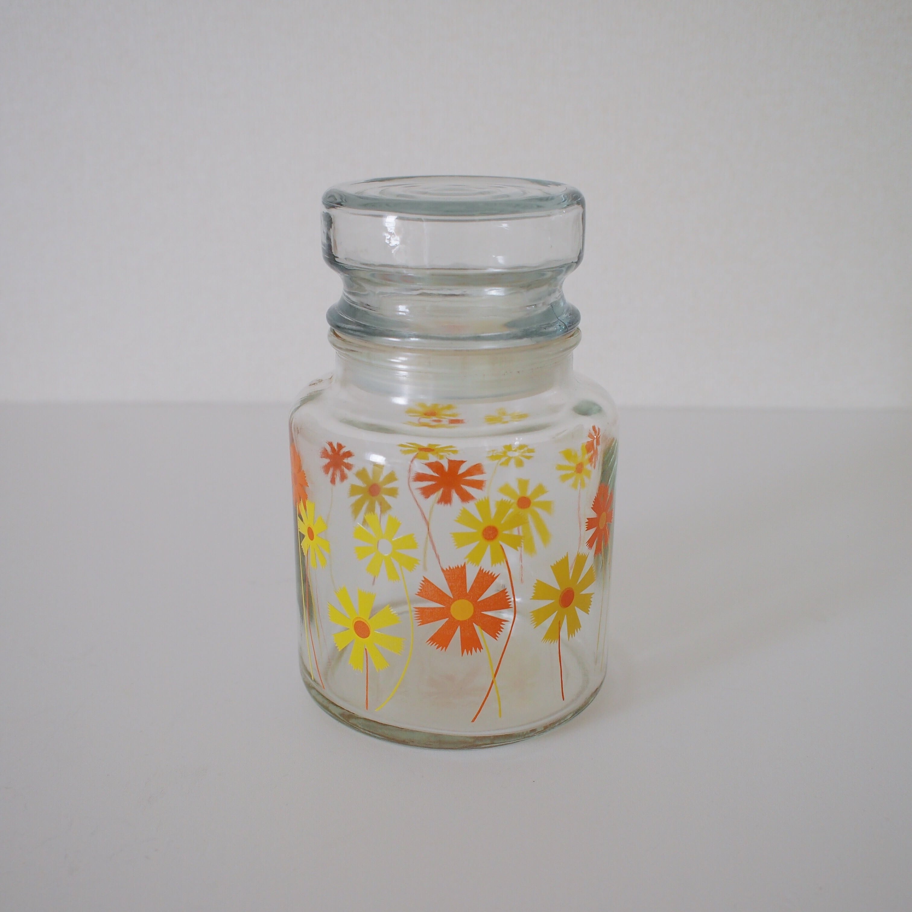 ヴィンテージ 昭和レトロ 花柄ガラスキャニスター