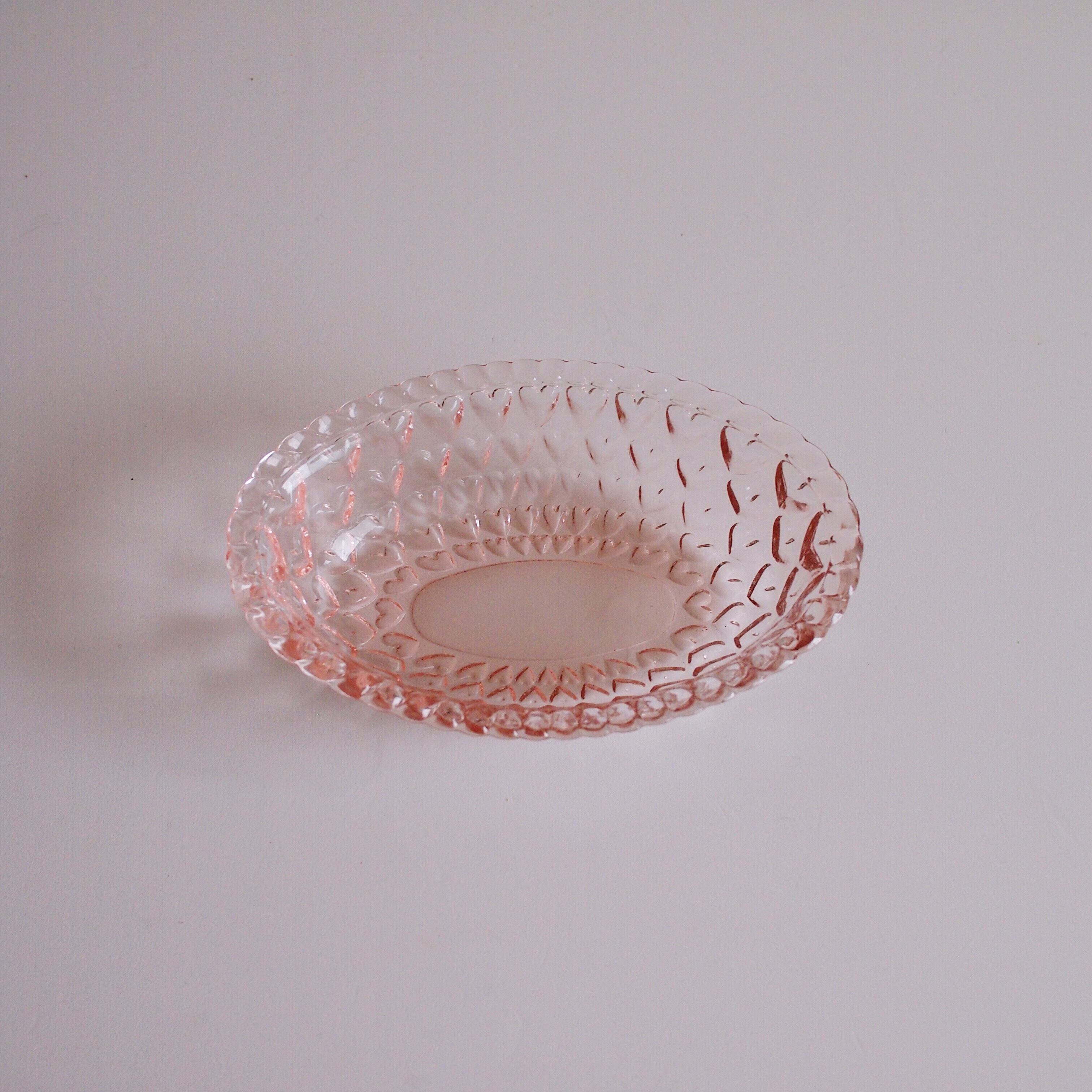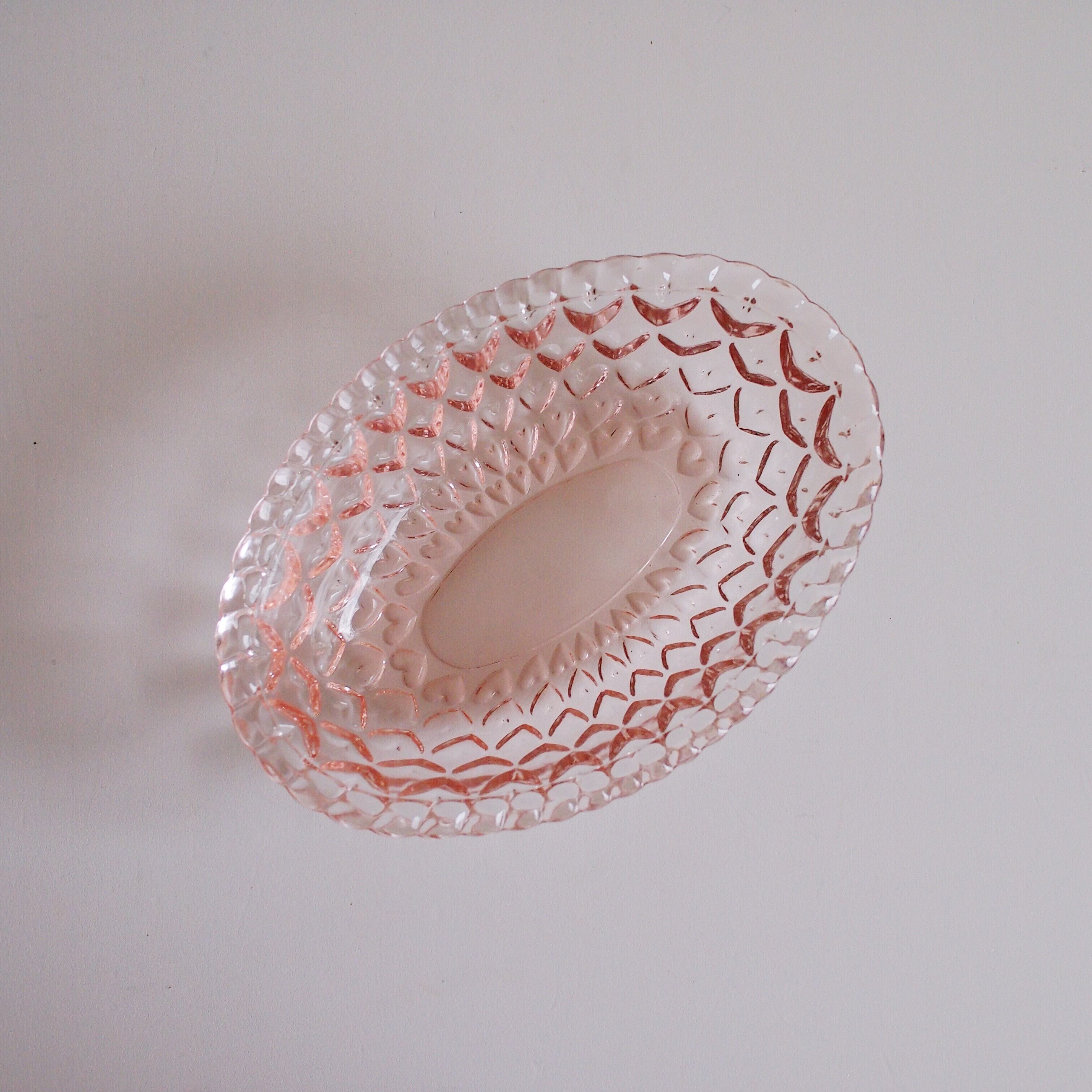 ヴィンテージ ピンクバブルガラスオーバル深皿