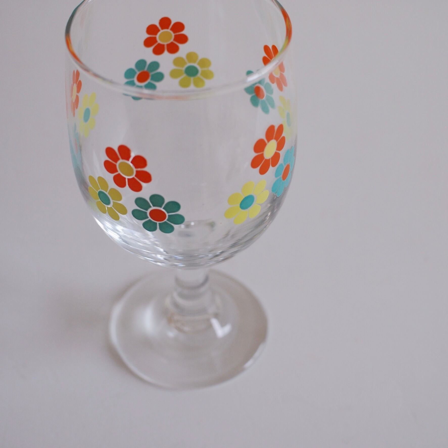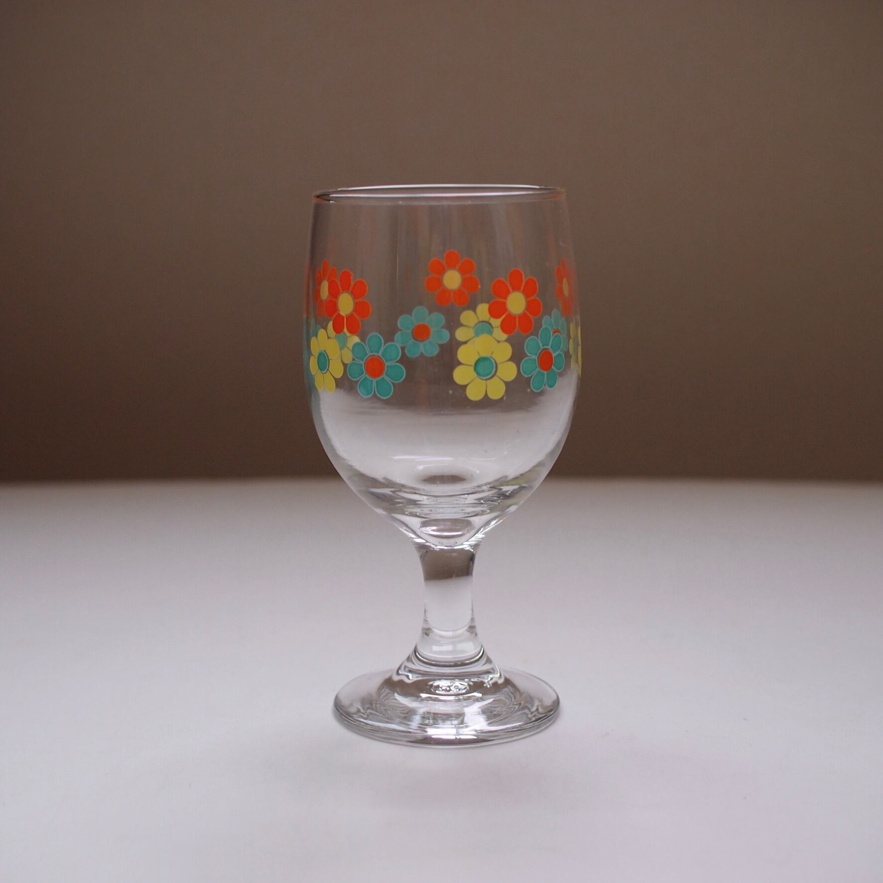ヴィンテージ 昭和レトロポップ 花柄ワイングラス 脚付きグラス