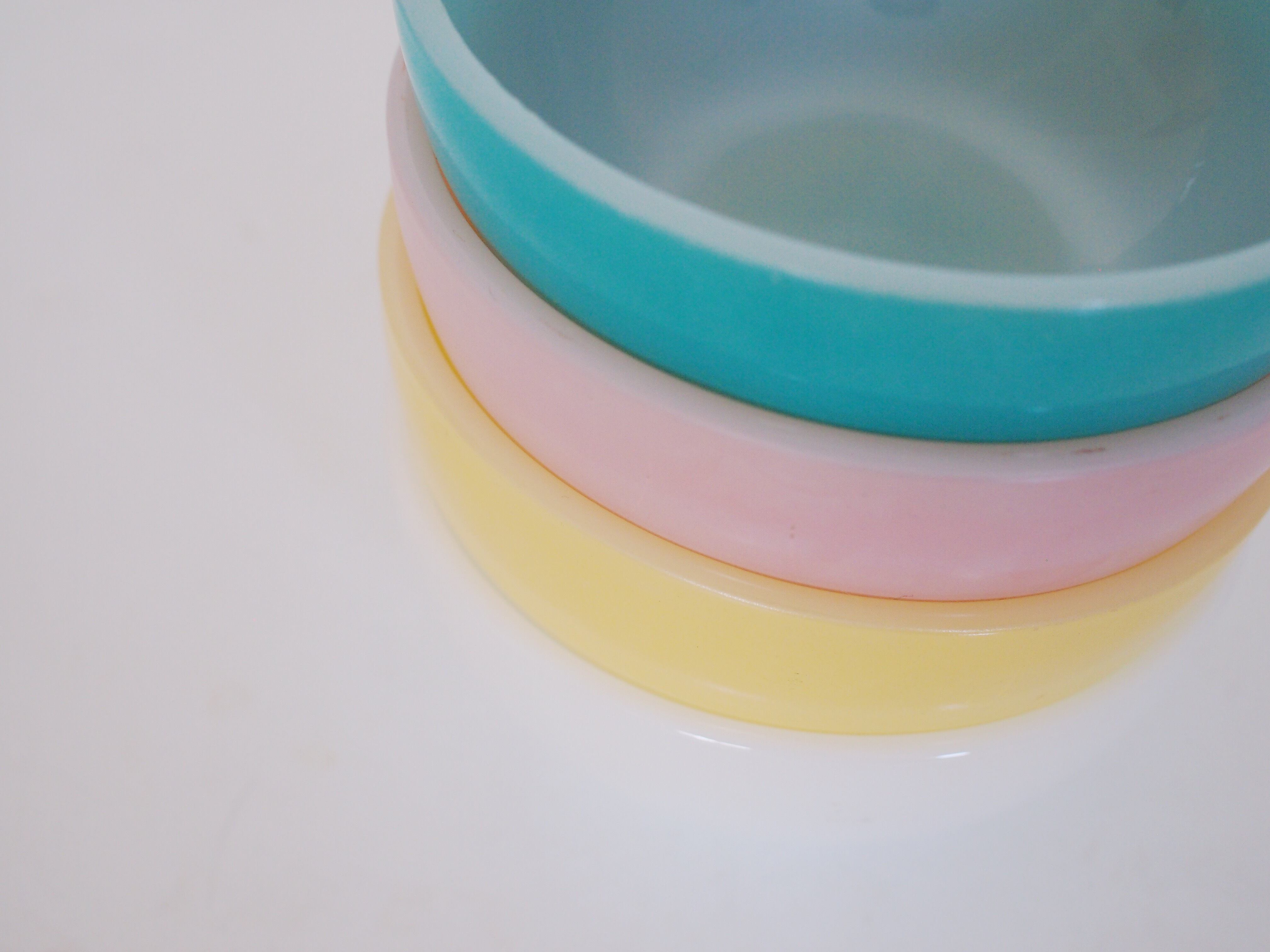 ファイヤーキングのカラフルでかわいいチリボウル4つセットです。シリアルボウルやサラダボウルとしてとても使いやすいシンプルなチリボウル。大き過ぎず小さ過ぎず、両手で包み込みやすいコロンとした丸い形はお子様でも使いやすく、一度使えば病みつきになります。朝食、ランチ、夕食まで重宝すること間違い無しです。ご家族でそれぞれ自分の色を決めて使っていただく方が多いです。ピンクとブルーグリーンは特に人気で定価も高めです。